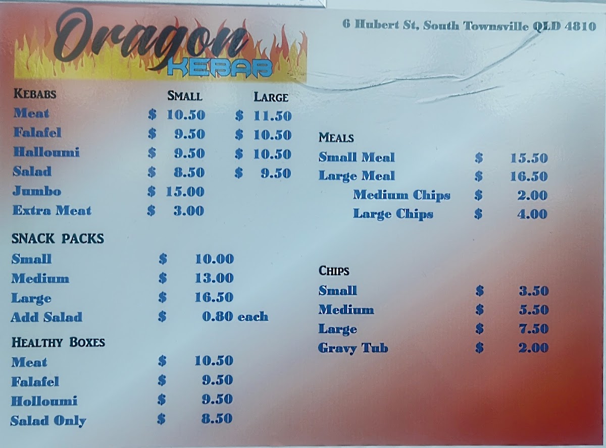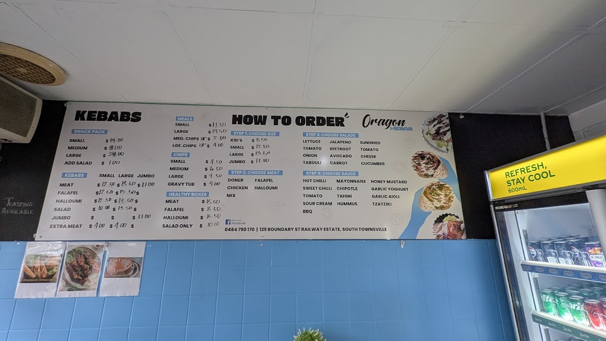 Oragon Kebab offers a diverse menu, perfect for those craving hearty meals or a light snack. For a nutritious option, their Healthy Boxes come in variations like Falafel, Salad Only, ChickenMeat, and Mix. If you're looking for a quick bite, the Perfect Pantry Appetizers feature a spicy Homemade Chili Paste to tantalize the taste buds. For dessert lovers, the menu includes indulgent treats like the DOUBLE CHOCOLATE MUFFIN, Turkish Delight, Cronut Raspberry, and the ever-popular Carrot Cake Slice. Don't forget to try the Cheesecake Jar Vanilla Cherry for a creamy finish. The snack packs, including the Large Snack Pack, Medium Snack Pack, and Snack Packs (Small), are great for sharing or a satisfying meal on the go. You can also opt for meals such as the Large Meal, Small Meal, or the signature Oragon Wild Burger. Their Signature Turkish Kebab and Doner kebabs are a must-try, as well as the Halloumi and FalafelJumbo options for a meatless delight. For those with a taste for something a bit different, the Homemade Rice Specials, like the Sweet Cured Chicken With Rice And Egg, offer a comforting meal. For the pasta lovers, try the unique Filipino Style Spaghetti. Side options include crispy Sweet Potato Chips, with sizes ranging from small to medium. Wash it all down with a refreshing Soda 600 Ml, Energy Drink, or Fuze Ice Tea. Oragon Kebab truly offers something for every craving, whether you're in the mood for a filling meal or a quick snack.